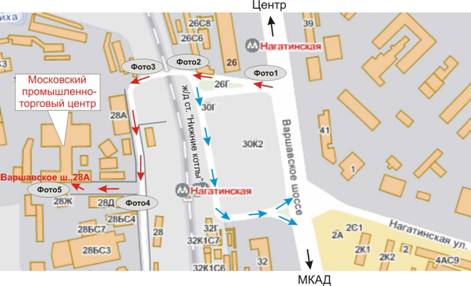 Стрелочками показан путь для автомобилей, а также пешком - выход из метро в сторону последнего вагона из Центра.